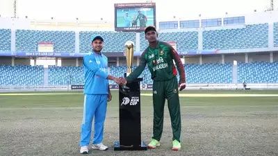 د ۱۹ کلنو کرېکټ اسیا جام پایلوبه؛ هند د بنګلهدېش په وړاندې توپ اچونه کوي
