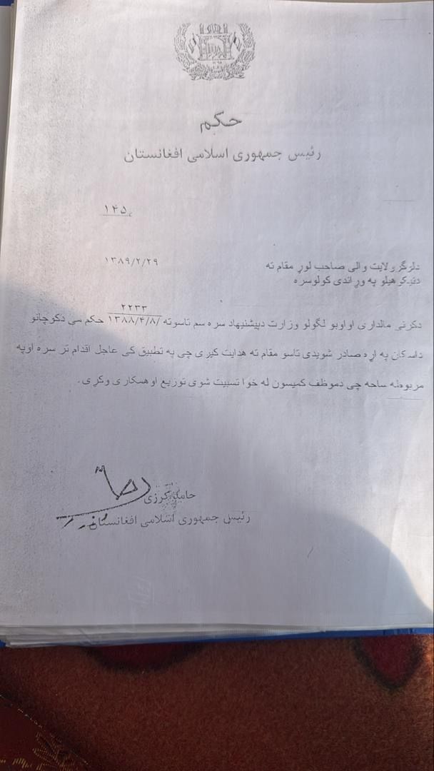 نوموړی زیاتوی چې ټول اسناد په لاس کې لري او څو ځله یې له عدلیې وزارت سره شریک کړي، خو هغوي یې له منلو انکار کوي او له بېلابېلو لارو غواړي پر دوی فشار راوړي.