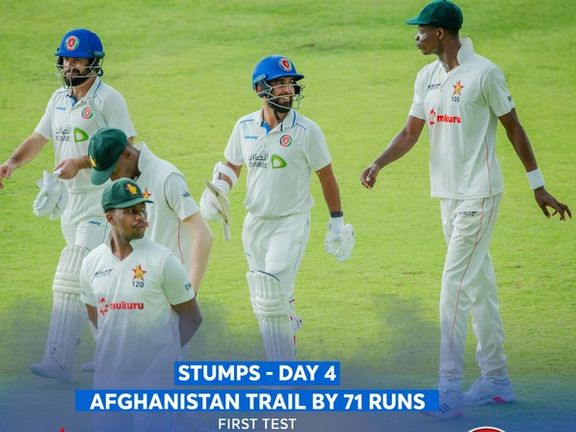 د افغانستان او زمبابوې لوبډلو ترمنځ د ټېسټ لوبې په څلورمه ورځ د سیالۍ وروستۍ دوه برخې د دوامداره ورښت له امله ترسره نشوې او په دې توګه څلورمه ورځ هم پای ته ورسېده.