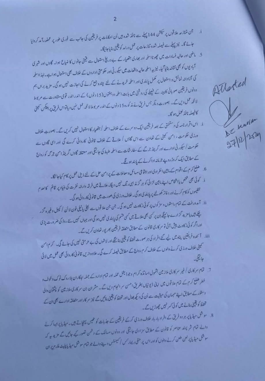 دغه راز ویل شوي، چې د تړون د عملي کېدو لپاره به د ولسوالۍ اداره او د سولې کمیټې له قانون نافذوونکو ادارو سره په ګډه کار کوي او هر ډول سرغړونه به د قومي دودونو او قانوني اقداماتو له لارې حل کیږي.