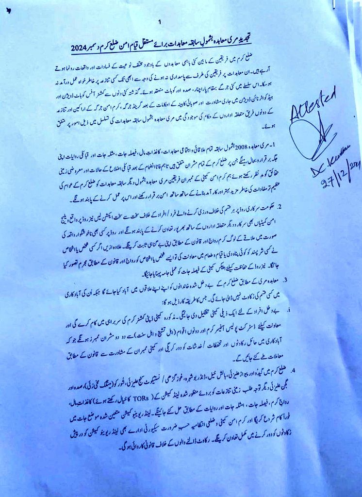 د مري دغه نوی شوی تړون د پخوانیو تړونونو اساسي اصول، لکه د قومي دودونو، ځمکو ثبت او پخوانیو پرېکړو خوندیتوب، تصدیقوي. دا عناصر د کورمې د ټولنیز جوړښت د ساتنې لپاره اړین ګڼل کېږي، ځکه قومي دودونه لا هم په دې سیمه کې مهم رول لوبوي.