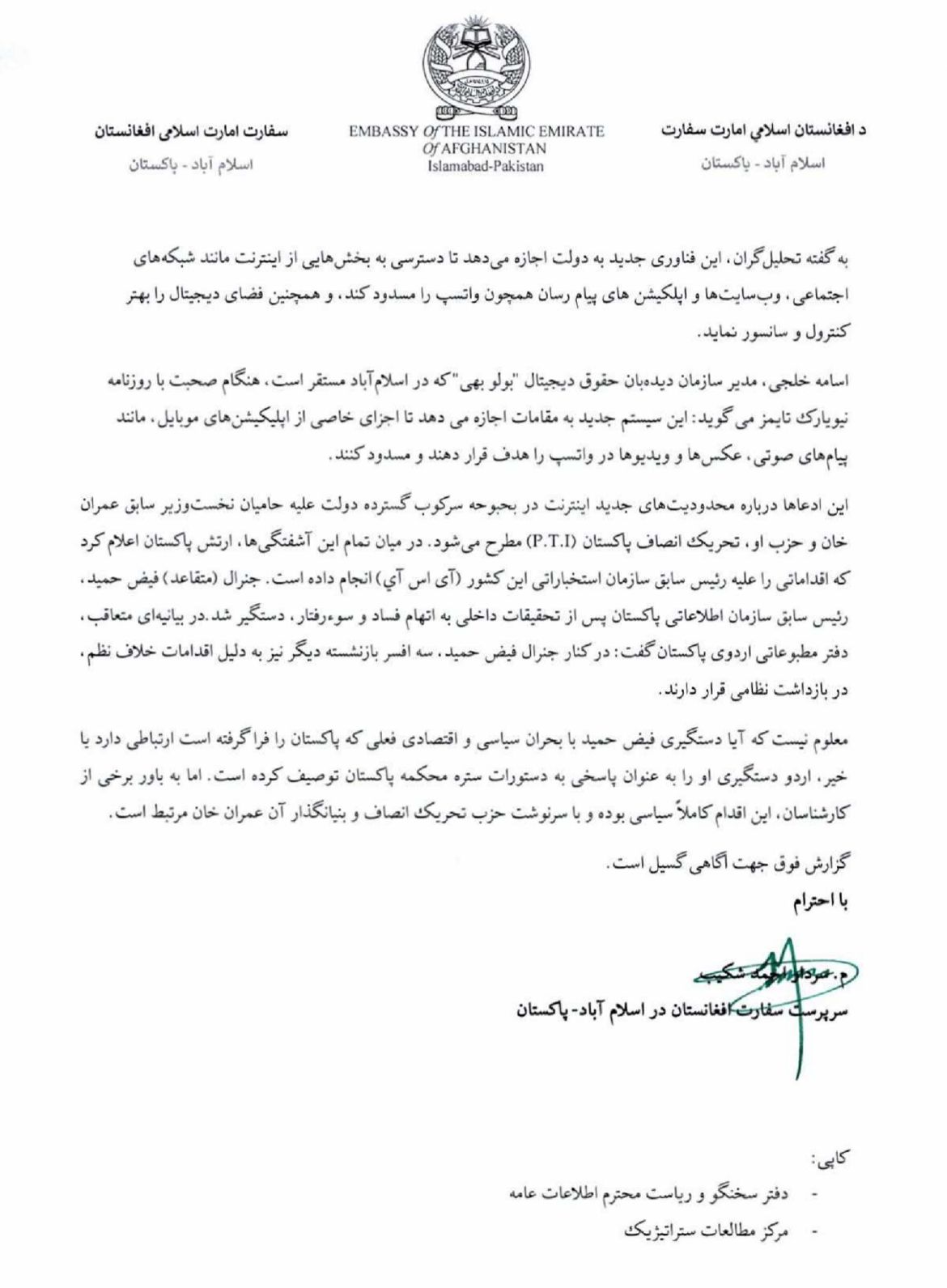 په مکتوب کې ویل شوي، چې یاد کس د کابل په هوایي ډګر کې د طالبانو د امنیتي ادارو له لوري د ګران بیه ډبرو د قاچاق په تور نیول شوی و.