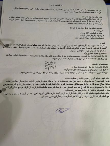 همداراز د «ابوزر عثماني عربزاده د ساختماني چارو شرکت» د قرارداد د لاسلیکوونکي نوم، حاجي خالد لیکل شوی دی.