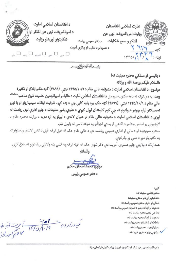 د طالبانو کډوالو وزارت د ننګرهار د تورخم او کندهار سپین بولدک سرحدي امریتونو په حواله ویلي، چې دغه کسان د قانوني اسنادو د نه لرلو له امله د پاکستان په بېلابېلو سیمو کې نیول شوي وو.