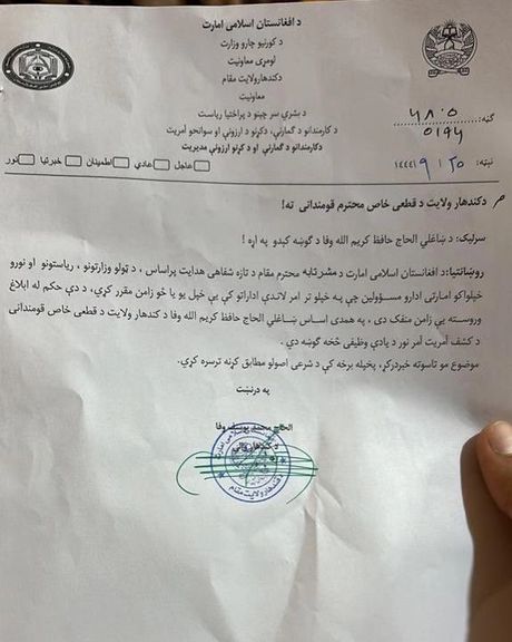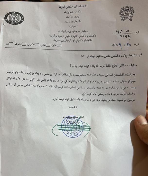 د دغه مکتوب له مخې، چې افغانستان انټرنشنل ته هم رسېدلی و، د خپلوۍ له مخې د اشخاصو ګومارل د "الله د نارضایتۍ او عذاب سبب کیږي".
