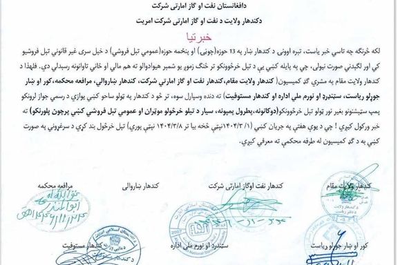 د ولایت مقام په مشرۍ یوه ګډ کمیسیون د کندهار نفت او ګاز دولتي شرکت، کندهار ښاروالي، محکمې، کور او ښارجوړولو ریاست، سټنډرډ او نورم ملي ادارې او کندهار مستوفیت ته دنده سپارلې چې په کندهار کې له جواز لرونکو پټرول پمپونو پرته تېل پلورنځي بند کړي.