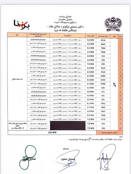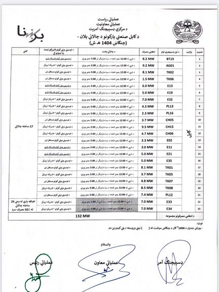 افغانستان انټرنشنل د طالبانو تر واک لاندې د افغانستان برېښنا شرکت دوه سندونه ترلاسه کړي دي، چې په یوه پلان کې لیکل شوي چې د برېښنا شرکت په کابل کې ۲۳ د اوسپنې د ویلې کولو فابریکو ته ۱۷ ساعته د برېښنا ورکولو ژمنه کړې.