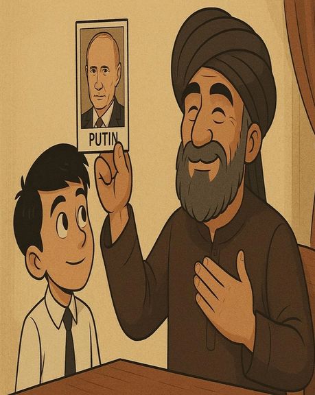 ملا صاحب: نو پوتین صاحب خو کافر دی او له کافر سره شیطان نه وي، له چا سره چې شیطان نه وي هغه به خود دغسې نېک کارونه کوي، مسلمانان بېچاره ګان خو شیطان پر ارامه نه پرېږدي.