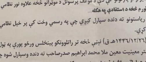 په سند کې زیاته شوې:«د امنیتي چارو ستر معینیت معیین ملا محمد ابراهیم صدر ته دنده سپارل شوې، چې نوموړی موضوع تر تعقیب لاندې ونیسي.»
