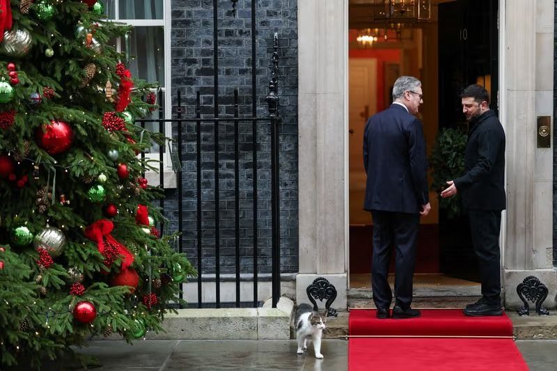 په دغه لیدنه کې نن دوشنبه (د لیندۍ۱۷مه) زېلېنسکي د برېتانيا، فرانسې او جرمني له مشرانو سره ولیدل، څو د امريکا د سولې وړانديز شوې طرحې ملاتړ ترلاسه کړي. هغه وويل، اوکراين له اروپايي او امريکايي ملاتړ پرته نه شي کولی مهمې پرېکړې وکړي.بلخوا، د برېتانيا لومړي وزير کېير سټارمر ويلي چې د اوکراين په چارو کې بايد په خپله کییف پرېکړه وکړي.د جرمني لومړي وزیر او د فرانسې ولسمشر هم په غونډه کې د امريکا د طرحې په ځينو جزياتو تبصره وکړه، خو ټينګار یې وکړ چې د خبرو او د همکاريو جاري ساتل پکار دي.