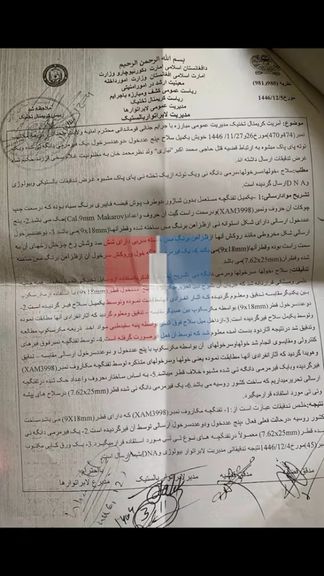 څېړنو ښودلې چې پنځه موندل شوي پوچک او دوه سره مرمۍ ټولې له یوې وسلې ویشتل شوې دي. د طالبانو د کورنیو چارو وزارت کارپوهانو د مایکروسکوپ په وسیله ثابته کړې، چې دا مرمۍ دقیقاً له هماغې ضبط شوې مکاروف تومانچې ویشتل شوې دي.