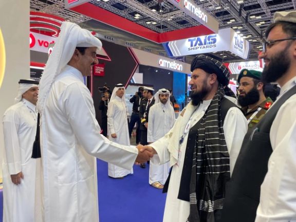 د طالبانو لوی درستیز د دیمدیکس نندارتون په څنډه کې د قطر له امیر سره روغبړ کړی