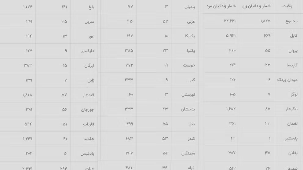 په افغانستان کې د ښځینه بندیانو شمېر د ۴۳۵ سلنه زیاتوالي سره یو زرو ۸۲۵ تنو ته رسېدلی دی. دا ښځې په ۳۴ ولایتونو کې په ۳۴ جلا بندخونو کې ساتل کېږي. د دغو شمېرو لهمخې، ۴۶۹ ښځې په کابل کې بندیانې دي او له هغه وروسته هرات او بلخ تر ټولو زیاتې ښځینه بندیانې لري.