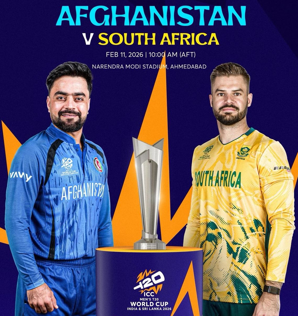 د ۲۰۲۶کال نړۍوال جام سیالیو پر دوام د افغانستان د کرېکټ ملي لوبډله نن د دغه سیالیو په دویمه لوبه کې د سویلي افریقا پر وړاندې د لوبو ډګر ته ښکته کېږي. دغه لوبه د افغانستان په وخت د سهار په ۱۰:۰۰ بجو د هند د احمداباد ښار په نرېندرا مودي لوبغالي کې پیلېږي.