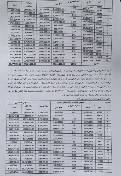 د کادستر او متراژ د تنظیم عمومي ریاست له خوا د ۱۶ ⁄ ۷ ⁄ ۱۴۰۳نېټې د استعلام په ځواب کې وړاندې شویو معلوماتو له مخې، قراردادي تر اوسه ۱۰۲ زره او ۴۰۷ ټنه نفرایټ ډبره استخراج کړې ده چې د عملي او حقیقي زیان اندازه اووه میلیونه او ۱۰۲ زره افغانۍ ته رسېږي.