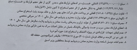 په دغو اسنادو کې دغه راز د کانونو او پټرولیم په وزارت او ولایتي ریاستونو کې د اداري او مالي اصولو جدي سرغړونې هم ثبت شوي دي.